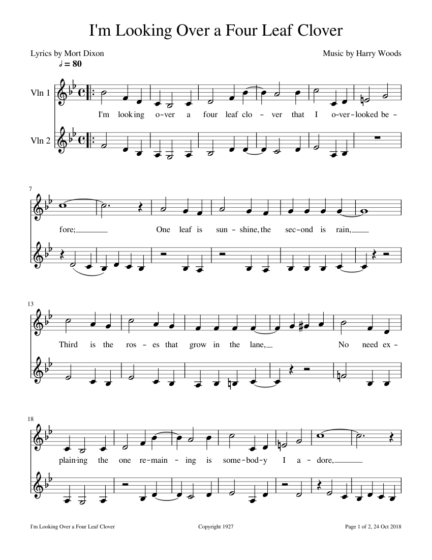 I M Looking Over A Four Leaf Clover Sheet Music For Violin String Duet Musescore Com