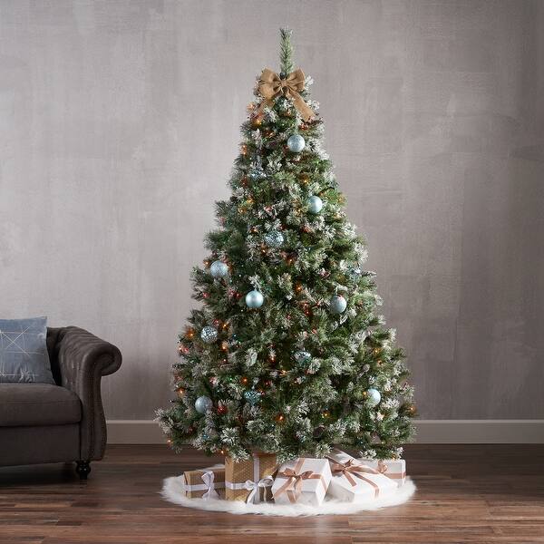 7 Ft Spruce Pre Lit Or Unlit Artificial Christmas Tree With Snow Glitter Branches Frosted Pinecones By Christopher Knight Home Overstock 23536181